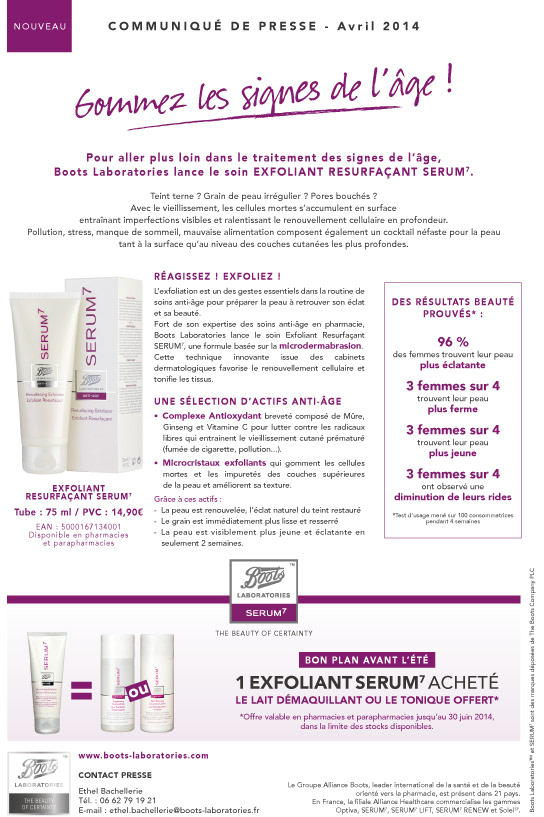 Réalisation de la mise en page du communiqué de presse de BOOTS LABORATORIES